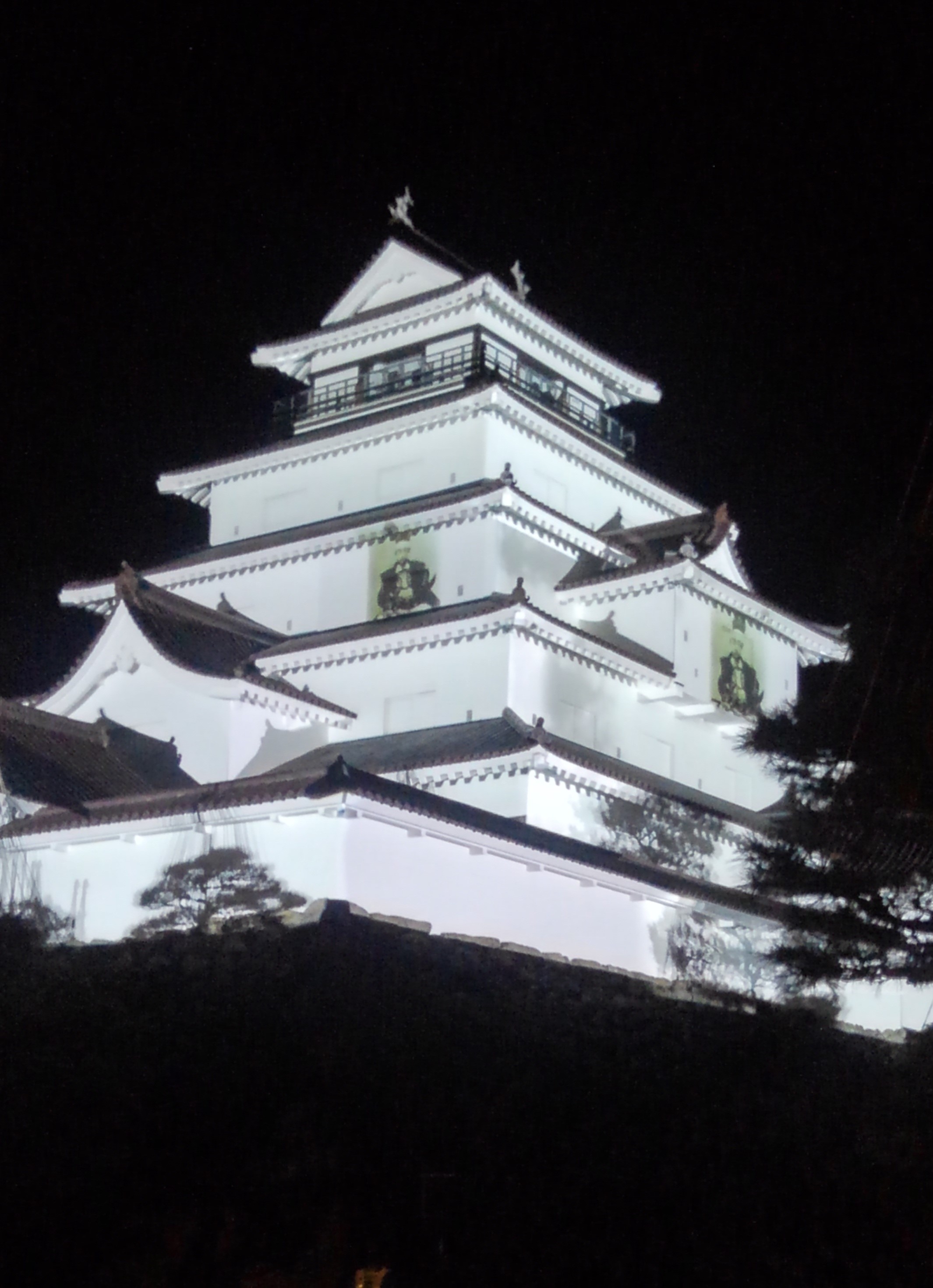 先日、会津若松に行ってきました。粉雪が舞う中、プロジェクションマッピングを観て